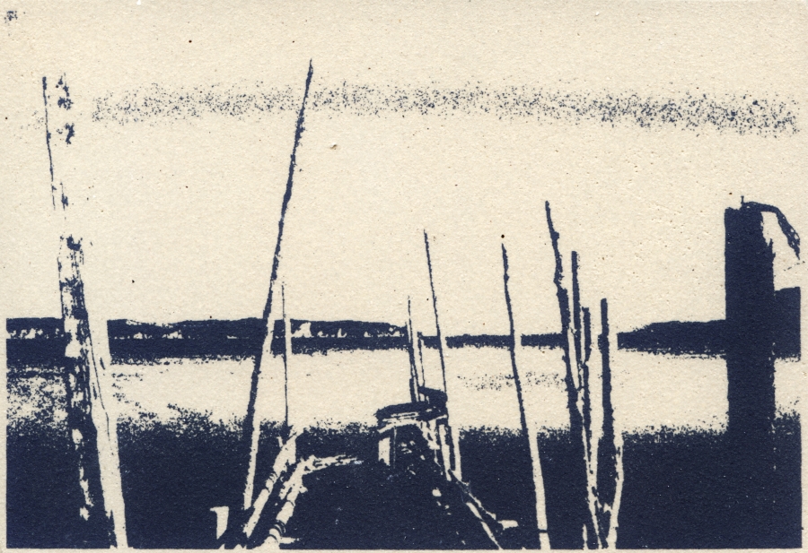 A photograph taken at Wellman’s Cove in Newfoundland, Canada, looking out over the ocean from a crumbling wharf, is printed on ceramic tiles. This ancestral place deteriorates physically and mentally as all that remains are pieces of old infrastructure and passed down memories. Each screen-printed dot acts as pixels of memory that are becoming lost to the point of breakage.